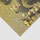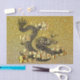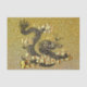 Papel de tejidos con la imagen de un dragón chino negro y dorado contra un fondo dorado purpurinoso.
