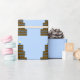 Este papel de embalaje bonito para los cumpleaños ofrece una torta de chocolate deliciosa con el galón a mano azul "formación de hielo".