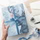 Papel de embalaje azul del navidad de la cabeza y del copo de nieve del reno. Apenas a tiempo envolver esos regalos especiales para ir debajo de su árbol este año.