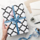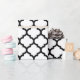 Enrejado blanco y negro del quatrefoil en el papel de envoltorio para regalos blanco del modelo. Mate impresa, brillante de alta calidad, lino o papel de regalo de papel de Tyvek. Diseño marroquí clásico del quatrefoil del ogee, hecho e impreso en los E.E.U.U. Ideal para el cumpleaños, aniversario y regalos o regalos de Navidad de boda.
