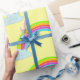 Papel de embalaje lindo que ofrece un modelo de gráficos lindos y bonitos del arco iris. Este papel de embalaje único se puede utilizar para la fiesta del cumpleaños de un chica, fiestas de bienvenida al bebé, aniversarios, y mucho más.