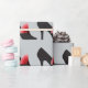 El papel de embalaje diseña la atracción de la era del art déco, zapato del tacón alto de los años 30. Zapato negro y rojo en fondo gris.