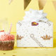 Papel de embalaje bonito de Quinceanera hecho en blanco, con los pequeños lunares dorados y el purpurina mirando el texto gráfico Quinceanera de lectura. Los gráficos de un purpurina del oro que mira la corona y un corazón del oro y rosado se dispersan alrededor del fondo del lunar. Modifique este los productos para requisitos particulares para añadir cualquier texto adicional a él. La cinta a juego y el papel seda está disponibles.