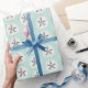 Papel de regalo de una playa por todas partes inspirado y veraniego con una impresión del dólar de arena en trullo, crema y marina de guerra.