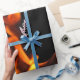 Este papel de embalaje representa la energía del fuego en una estufa ardiente de madera. El naranja, el oro y las llamas amarillas aparecen como caracteres alegres del baile. Son fijados apagado por un fondo negro.