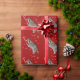 Envuelva sus presentes con un mapache adorable que come un bastón de caramelo gigante rodeado por los copos de nieve en un fondo rojo.