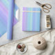 Este papel de embalaje hermoso exhibe un modelo en colores pastel suave del extracto del arco iris de las rayas azules, púrpuras, verdes y de la turquesa.