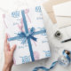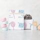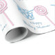 El tambor del bebé azul + caramelo en el papel de embalaje blanco.