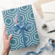 Papel de embalaje geométrico azul verde azulado del modelo del hexágono. Papel mate, brillante, de lino o extrafuerte impreso de alta calidad del papel de regalo de Tyvek. Diseño geométrico hexagonal moderno, hecho e impreso en los E.E.U.U. Ideal para el cumpleaños, aniversario y regalos o regalos de Navidad de boda.