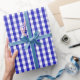 Un papel de embalaje diseñó con un modelo de la guinga del azul real y del blanco en talla media.