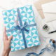 Aguamarina moderna azul y papel de embalaje geométrico blanco del modelo del triángulo. Papel mate, brillante, de lino o extrafuerte impreso de alta calidad del papel de regalo de Tyvek, hecho e impreso en los E.E.U.U. Diseño del enrejado del triángulo en los colores contemporáneos, ideales geométricos para el cumpleaños, aniversario y regalos o regalos de Navidad de boda.
