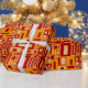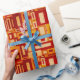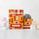 El papel de embalaje moderno de Geometrics de los mediados de siglo retros ofrece un modelo geométrico de rectángulos y de cuadrados con una textura del crujido. Los colores son rojo, amarillo de oro, ocre y marfil.