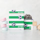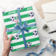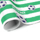 Este papel de embalaje se adorna con un modelo de repetir balones de fútbol y rayas verdes y blancas, y se personaliza con su texto. Qué una manera única y especial de envolver los regalos. Grande para el navidad, el día de San Valentín, cumpleaños, gracias entrenar - cualquier ocasión. ¡Los jugadores de fútbol, los coches, y los fans la amarán! Todos los derechos reservados © Alan 2014 y Marcia Socolik.