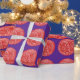 Para una mirada única y festiva, un dibujo abstracto rojo y blanco de una bola del navidad se teja en el papel de embalaje. El color de fondo de la púrpura puede ser modificado para requisitos particulares.