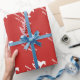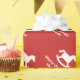 Papel de embalaje rojo del navidad del caballo mecedora del niño. Abrigo de regalo de vacaciones lindo para los pequeños niños. Añada su propio nombre y estaciones personalizados que saludan como Felices Navidad o buenas fiestas. Conveniente para el muchacho o el chica. El embalaje de moda rueda con final brillante o mate.