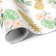 Papel de embalaje perfecto de la deformación del regalo para ese asunto tropical con la flor de la acuarela floral y las piñas del oro