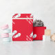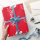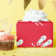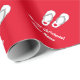 Papel de embalaje rojo tropical de los flips-flopes de las Felices Navidad con saludos personalizados del nombre y de las estaciones. Diseño lindo del giftwrap de Navidad con los deslizadores o las sandalias tropicales de la playa. Día de fiesta divertido que envuelve las fuentes para las mujeres y los niños de los hombres. ¡Felices Navidad! Color de fondo adaptable. Disponible en mate y brillante.
