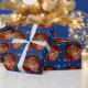 Rampant Rudolph papel de envoltura brillante azul. Este diseño, originario de una marca de cerveza de alta venta, ahora está disponible en una variedad de artículos para Navidades.