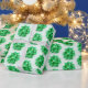 Diseño de papel de envoltura de vacaciones de todos los arcos en verde con una ligera sombra verde de una caja detrás de cada uno.
