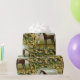 Este elegante papel de regalo está decorado con cuadros antiguos de caballo y jockey rodeados por un campo de flores amarillas de los Ojos Negros. Accesorio perfecto para tus fiestas Kentucky Derby, o para envolver regalos para tu amigo amante del caballo!