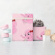 Papel envuelto con diseño con ilustracion de un elefante rosa con ratón blanco ilustrado por Radka Kavalcova / MaxiHarmony