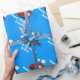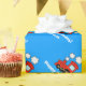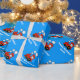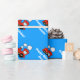Papel de envoltura de cumpleaños personalizado | tren de choo de juguete rojo. Diseño de personalizado locomotora de juguete con nombre de personalizable de niño. Embalaje de regalo para niños pequeños o bebés. Personalizable de color de fondo azul. Idea para el primer cumpleaños o fiesta de ducha para bebés. Gráficos de juguetes para niños. También es agradable para las vacaciones de Navidades.