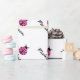 Papel de envolvimiento de mariquita personalizada para ducha de bebé o primer cumpleaños. Elegante diseño de papel de envoltura animal con nombre de niño. Color del fondo del personalizable, es decir, rosa pastel claro para la niña. Patrón de envoltura de regalo para recién nacido y mamá. Diseño de moda de moda preppy para recién nacidos. Ilustracion de insectos de pájaro.