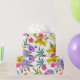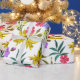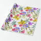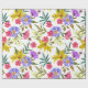 Flores de bonito coloridas con un fondo rosa claro. Flores moradas, amarillas y azules con vegetación.