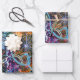 Pintura original sobre papel de envoltura - remolinos, fuegos artificiales, flores y colores vibrantes.