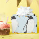 Este precioso papel de envoltura estacional presenta un diseño simple de un pingüino Gentoo en blanco y negro, sobre un fondo azul.