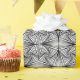 Un diseño llamativo de líneas negras y blancas que giran en una variedad de cuadrados cruzados. Psicodélico y vibrante para vestir cualquier regalo con distinción y estilo decorativo. ¡Impresionante!