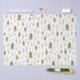 Pinos acuarelas, un venado adorable, un hueco y algunas bayas rojas, todo de fondo blanco. Elegante y sencillamente maravilloso.