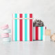 Este bonito papel rayado en rojo blanco y turquesa es perfecto para vacaciones, cumpleaños y proyectos de artesanía.