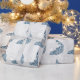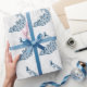 Envolver regalos para la novia y el novio con un rollo de papel de envolver Boda de hojas de pavo real azul. El diseño de papel de envolvimiento presenta un fondo de parra gris claro y de hoja blanca con un pavo real azul y azules. También hay artículos de papelería y regalos adicionales para bodas disponibles con este diseño.