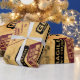 Diferentes tipos de sellos de viaje y franqueo en un fondo de papel marrón.
