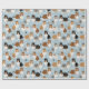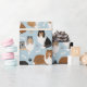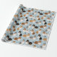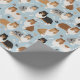 Los perros de la raza Rough Collie se sientan y se paran y vuelan con abrigos estables, tricoloreados, suaves y blancos, con huesos de perro dispersos y patrones de huellas de alfileres.