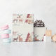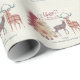 Este rústico Navidad de campo envuelto en papel tiene tres estampados de árboles navideños con manchas, puntos de polka, y patrones de copos de nieve en tonos mudos de burdeos, bronceado y estrellas de oro verde encima de dos de los árboles. También hay dos venados de pie en un esquema de colores que se corresponde con el resto. El dólar tiene polvorientas corbatas de color gris azul. Hay lujosas letras en burdeos que dicen "Feliz Navidad" al lado de los árboles. También se personaliza con tu apellido u otro texto en letras azules o puedes borrarlo si no quieres personalizarlo.