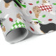 Pastores australianos dulces / Perros australianos con abrigos negros, marrones y merlados sentados y de pie en trajes festivos. Sombreros de Papá Noel, cántaros, sudaderas en un entorno vacacional con adornos dispersos.