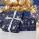 Envuelve tus regalos de Navidades esta temporada de vacaciones con este Papel de envuelto de renos azules. El diseño de papel envuelto presenta a un reno festivo vestido con una corona de Navidades adornada con bayas y copos de nieve que caen y una caja de saludo de vacaciones decorada con guirnaldas de vacaciones. También hay artículos de regalo y de vacaciones disponibles con este diseño.