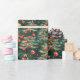 Una vibrante exhibición de papel envuelto de Navidades con pinos hermosamente decorados, adornos brillantes y estrellas encantadoras, perfecto para realzar momentos de regalos vacacionales.