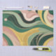 Este suntuoso papel de tejido envuelto en regalo presenta un impresionante patrón boho con líneas orgánicas abstractas en una hermosa combinación de verde salado, rosa polvoriento y amarillo ocre soleado.