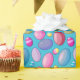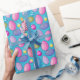 Toneladas de diversión para todos con este papel de envoltura de huevos de Pascua. Los huevos son de diferentes colores, como el azul, el rojo, el rosa, el púrpura y el amarillo sobre un fondo azul.