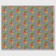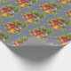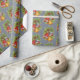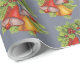 Este Navidad envuelve papel con Navidades de colores vivos Bells en un fondo azul con bayas y azules.