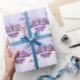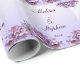 Las preciosas vidas adornan este elegante papel de envolver boda floral con spray lilac rosa y malva sobre morado pálido. Personalizar el texto para tu ocasión especial.