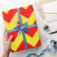 Papel de envoltura diseñado con un patrón de chevron rojo y amarillo de tamaño extra grande. Personalizar el color amarillo de una manera fácil.