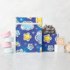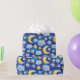 Un cielo celestial celestial azul celestial, adornado con estrellas y lunas amarillas