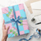 Se ha añadido al diseño "Dango Away" un fondo de cuadros azules y rosas que recuerda a los pétalos de Sakura flotando suavemente a través de un cielo primaveral fresco. La adición de una ligera sombra ayuda al dango a reaparecer. Diseño grande