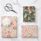 Conjunto de 3 animales de la selva que envuelven papel con ilustraciones de león, jirafa, chita, tigre, elefante y flores. Perfecto para los niños fiestas con temática zoológica. Cada conjunto incluye uno de los siguientes elementos: 1 - Animales de safari con flores tropicales coloridas sobre el fondo beige 2 - Animales de safari con flores tropicales coloridas sobre el fondo verde del bosque 3 - Patrón floral colorido