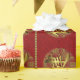 Moda Año Nuevo chino / papel de envoltura de Bodas hecho con una apariencia de brocado rojo. Los gráficos de bandas con cuentas de tono dorado recorren el fondo de la brocada, con símbolos chinos de oro para la salud decorando entre las bandas.
