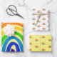 ¡Feliz papel de envoltura de arcoiris para el presente de los niños, adultos o incluso para ti mismo! Dos de las sábanas tienen un patrón de arco iris repetido. Una hoja tiene un fondo blanco y una hoja tiene un fondo amarillo feliz. Haz una declaración audaz y feliz con la tercera hoja que tiene un bello arco iris grande sobre un alegre fondo amarillo.